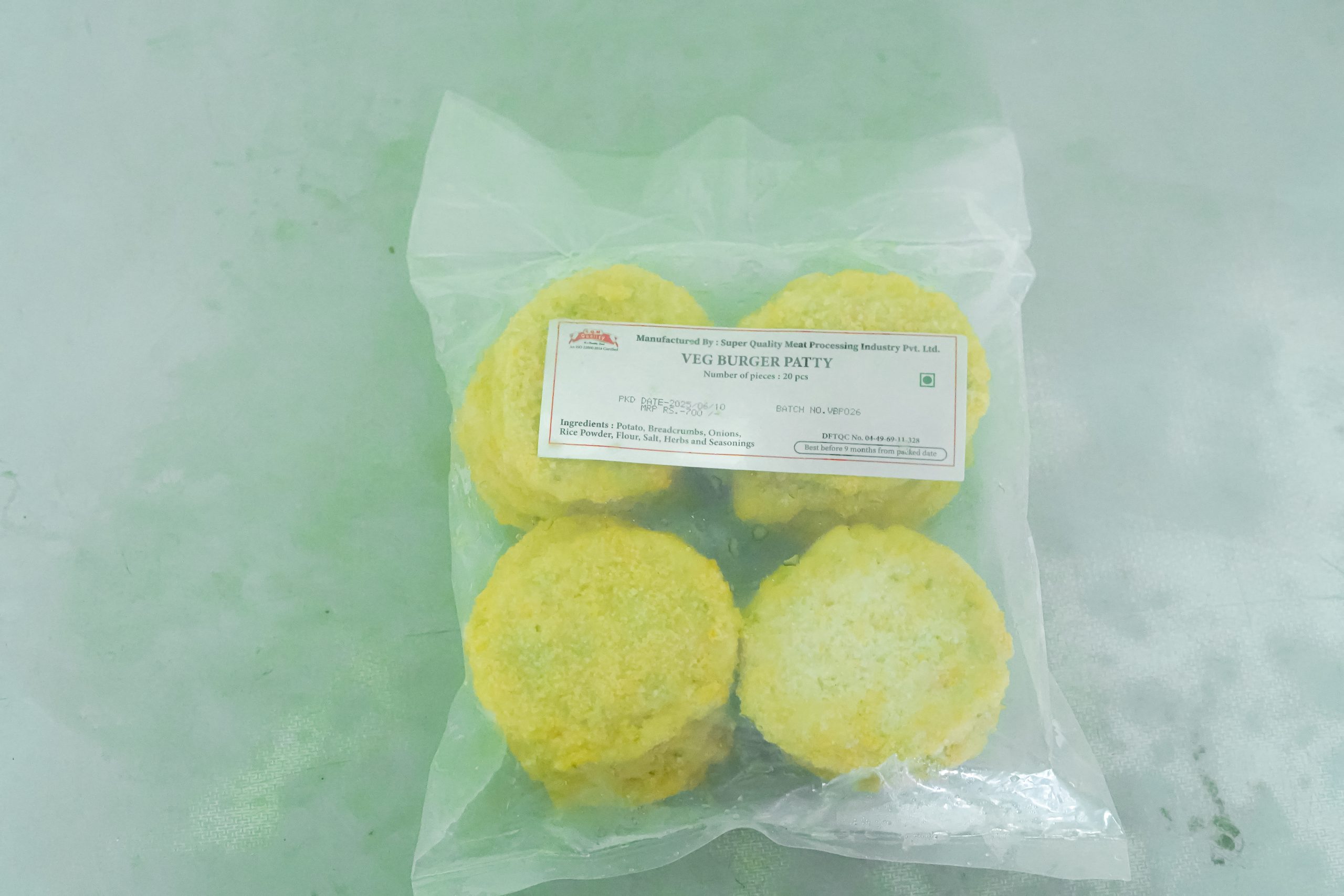 Our Veg Burger Patty is made from a wholesome blend of farm-fresh vegetables, potatoes, and carefully selected spices, delivering a crispy exterior and soft, flavorful interior in every bite.